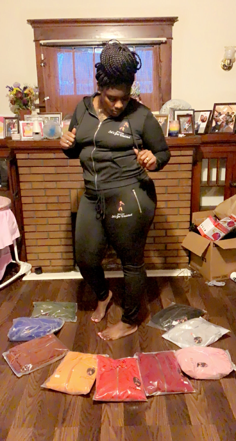 100%polyester 2%spandex , true to size but if you want a little looser and not snug I recommend going up one size (in photos I’m wearing a xl, in pink she’s wearing a medium and a large in her gray .. comes in different sizes and colors