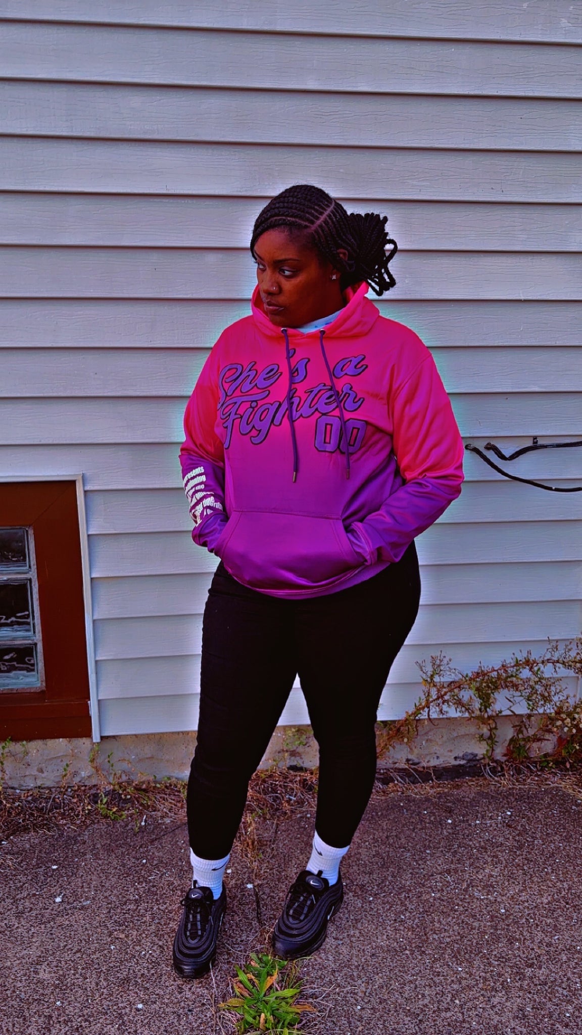She’s a fighter ombré hoodies were made to represent “the women “ who’s ever had a battle or storm to fight but always came out undefeated .. whether it was mentally , physically, or spiritually.. you are a warrior! These hoodies also represent breast cancer awareness and domestic violence awareness. Slim fit hoodies that are true to size (please size up if you don’t like the fitted look) very great quality, front pockets and slightly thick material, very comfortable made for all seasons .
